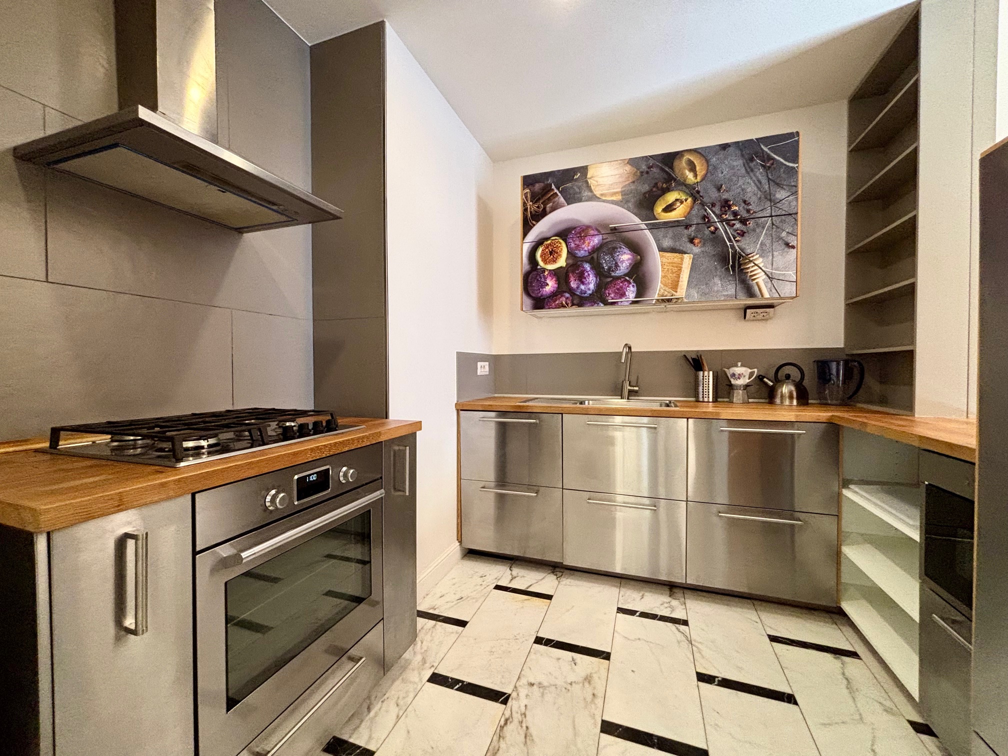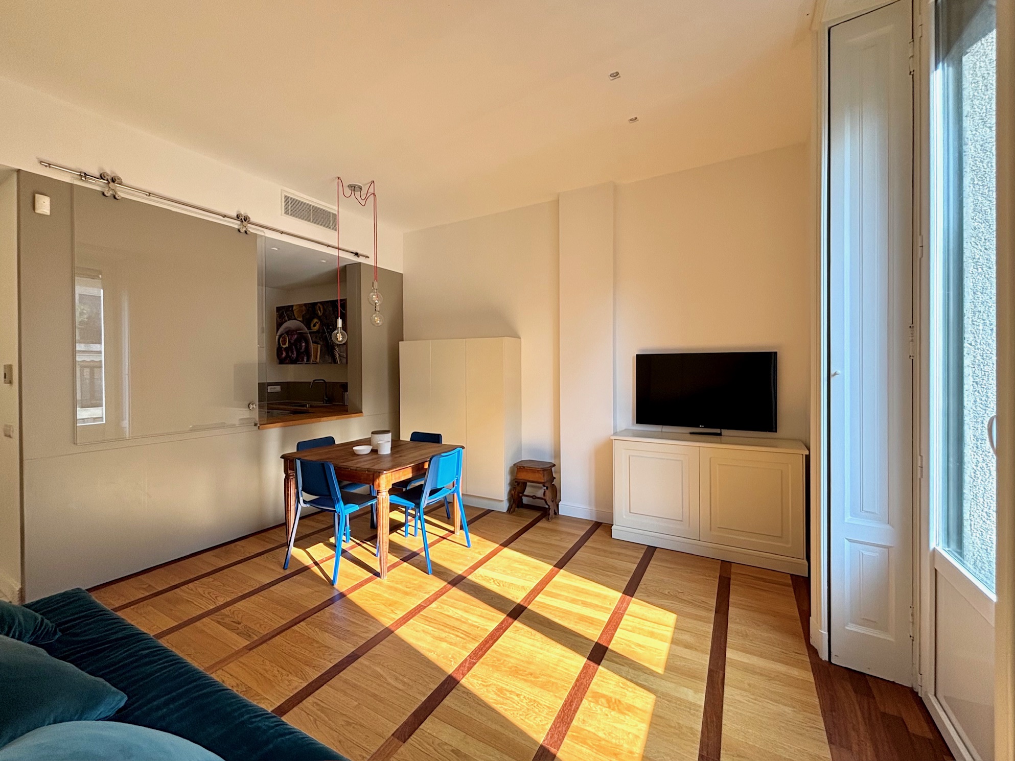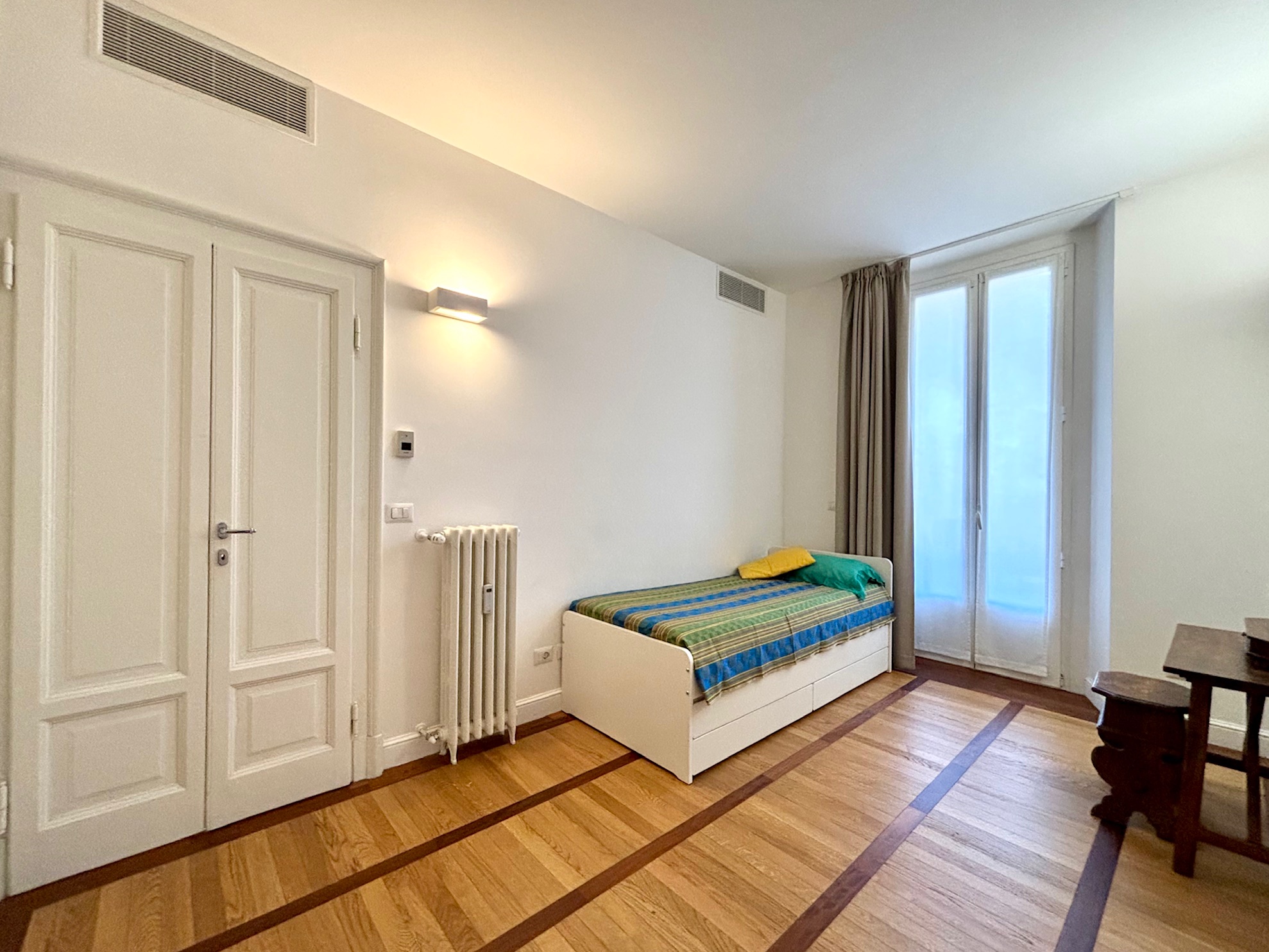 L'appartamento è completamente ristrutturato con un approccio di design moderno e curato affinchè si armonizzi con le atmosfere del contesto d’epoca.