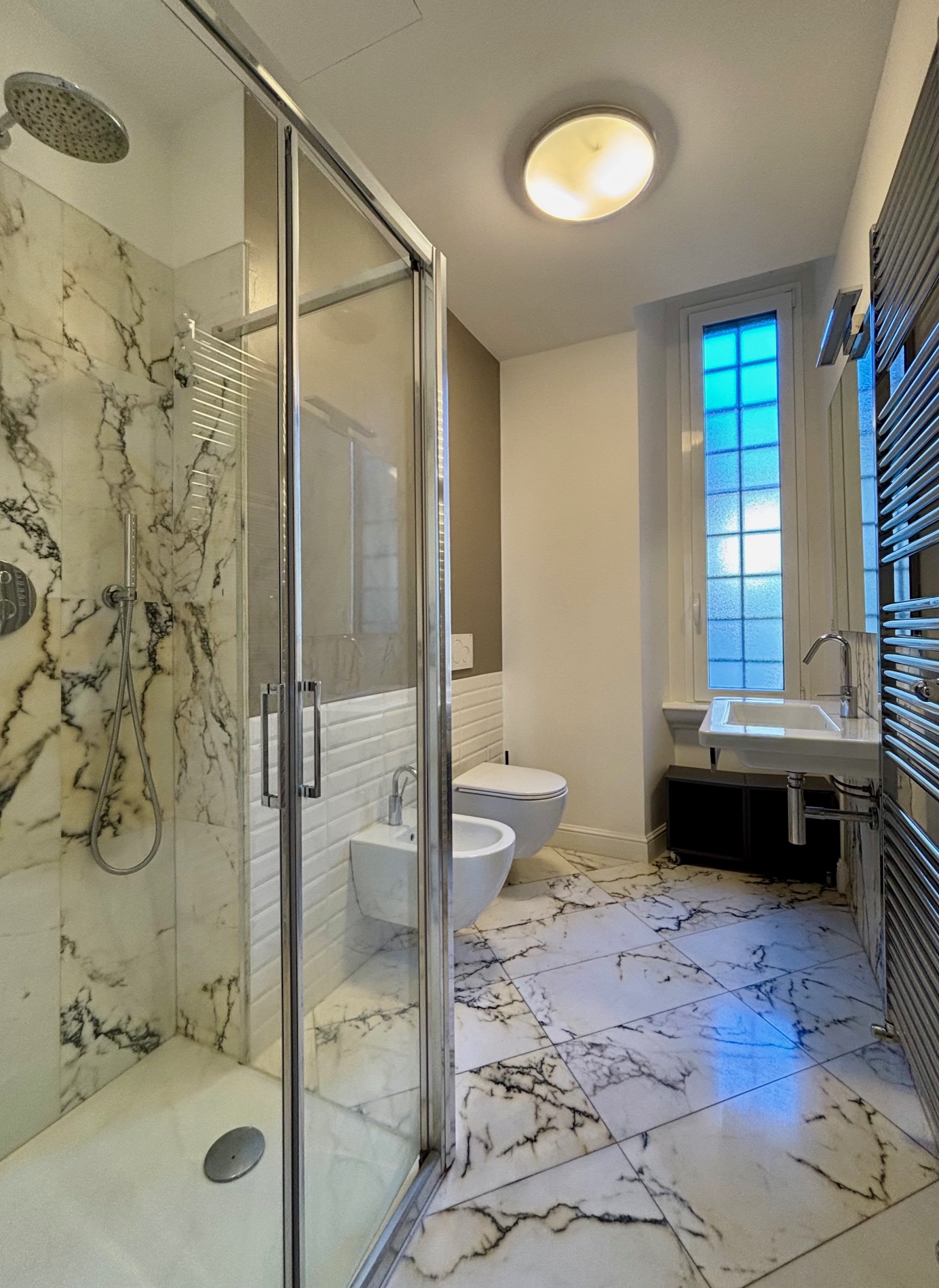 Ottime le finiture: parquet e marmo.